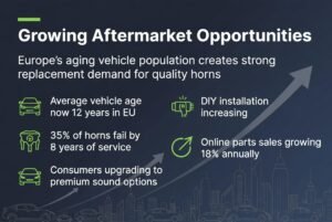 Europe's aging vehicle population creates strong replacement demand for quality horns.