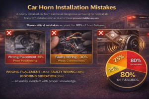 Three critical mistakes account for 80% of horn failures: wrong placement (45%), faulty wiring (30%), and ignoring vibration (25%) - all easily avoided with proper knowledge.