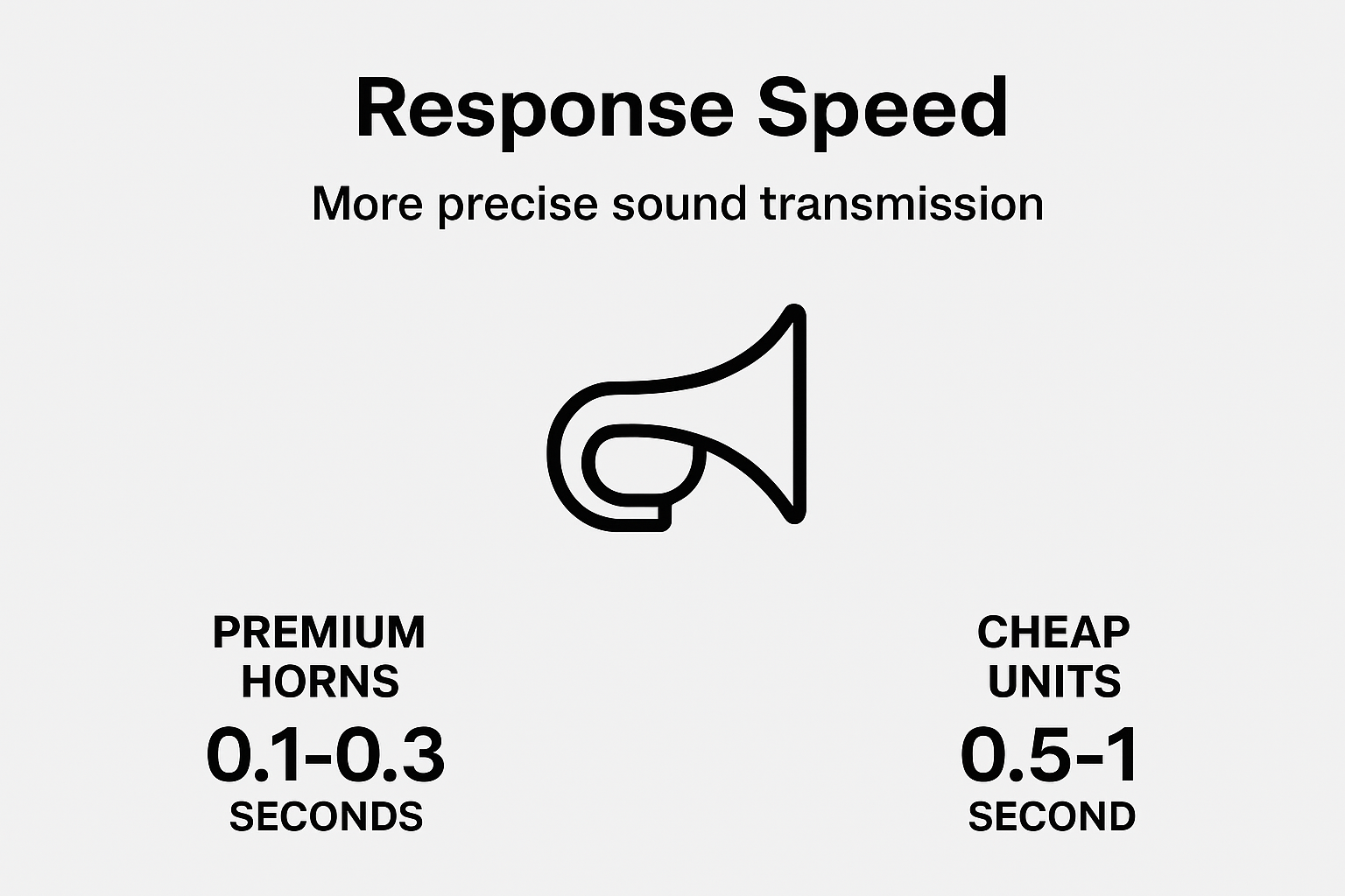 Our tests show premium horns achieve full volume in 0.1-0.3 seconds versus 0.5-1 second for cheap units - this split-second difference could prevent accidents in emergency situations.